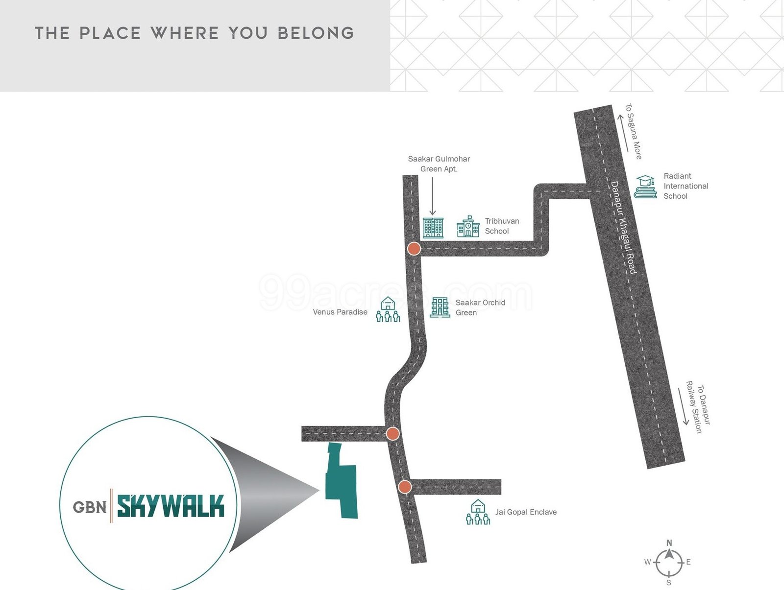 The project is located in Danapur, providing good connectivity to major parts of Patna. It is close to Danapur Railway Station, with easy access to Patliputra Railway Station and Phulwari Sharif Railway Station. Important facilities like Ashutosh Memorial Hospital, schools, and local markets are nearby.