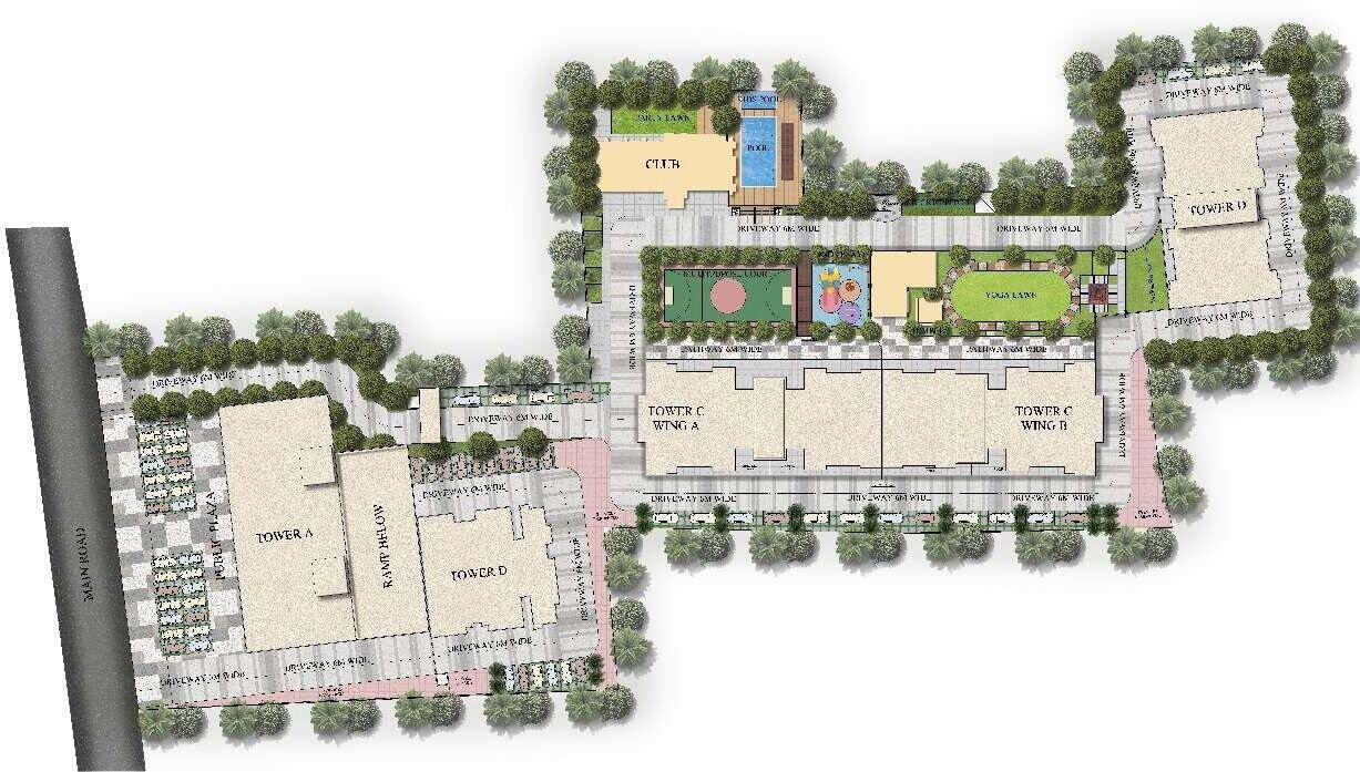 Winsome Icon is spread across 3.1 acres and comprises 5 residential towers, each rising up to 16 floors. The project includes approximately 354 units, offering a well-structured and moderately dense residential environment.